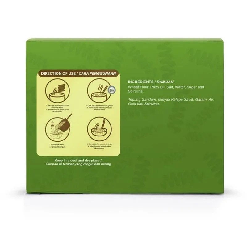 Instead of using colorants, artificial flavors, and harmful oils. Natural spirulina is used as the main ingredient in this instant pasta.